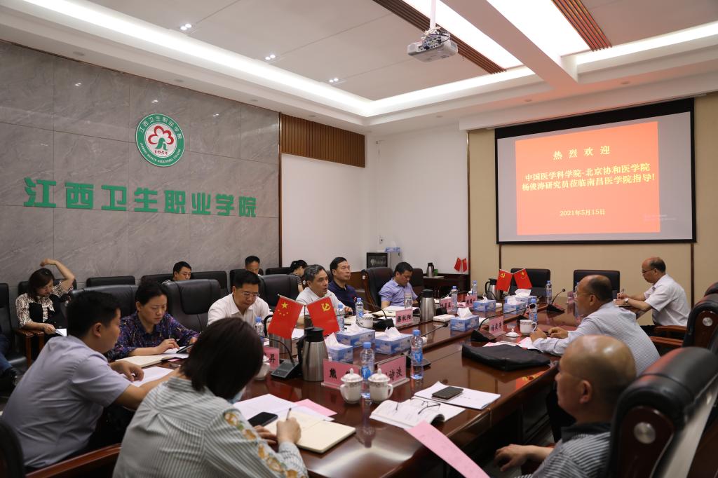 5月15日,中国医学科学院、北京协和医学院发展规划处处长杨俊涛来到BB贝博艾弗森官方网站小蓝校区,调研指导BB贝博艾弗森官方网站发展规划相关工作。省卫生健康委发展规划处处长,BB贝博艾弗森官方网站党委委员、副校长操秋阳,BB贝博艾弗森官方网站党委委员、副校长胡振宇、潘星星、赖国文及学院相关部门负责人陪同调研并参与座谈交流。