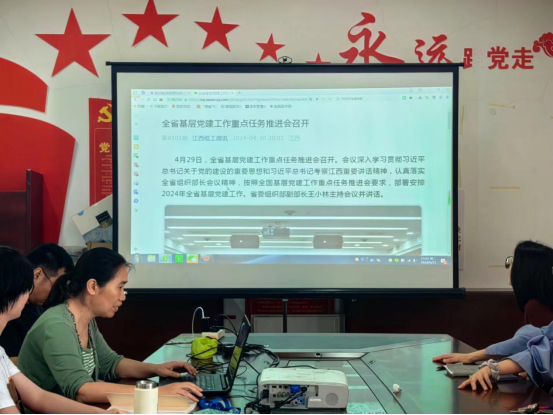 为深入学习贯彻党的二十大精神,扎实开展好党纪学习教育,BB贝博艾弗森官方网站党支部于6月11日下午开展了主题为“忠诚担当心向党,砥砺奋进迎七一”的党日活动。党支部副书记周洁主持会议,全体党员参会。
