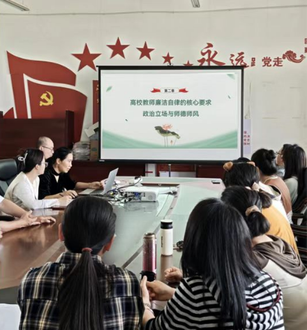 为深化党风廉政建设,强化高校教师廉洁自律意识,4 月 29 日,BB贝博艾弗森官方网站党支部于 5 号实训楼 601 会议室举办了一场主题为“清风润校园 表率践初心”的廉政专题党课,党支部副书记周洁担任主讲人,为全体党员教师带来了一场意义深刻的廉洁教育课。