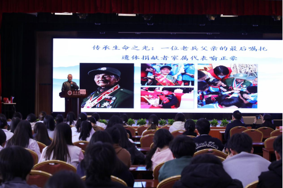 叶德胜在致辞中向“大体老师”致以崇高敬意,强调遗体捐献者是医学生成长路上的“无语良师”,寄语老师立德树人,医学生铭记恩情、践行医者初心。