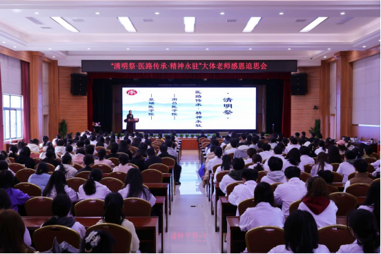 4月1日下午,BB贝博艾弗森官方网站在大学生活动中心隆重举办“清明祭·医路传承·精神永驻”大体老师感恩追思会。校党委委员、纪委书记叶德胜出席活动并致辞,捐献遗体的抗战老兵喻芳铭家属代表喻正豪、萍乡红十字会王蓓蕾女士及师生代表等200余人参加活动。