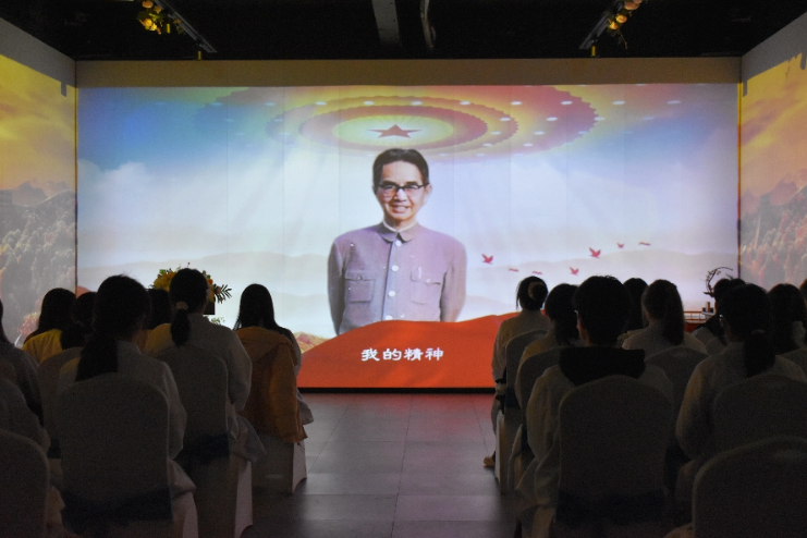 活动伊始,同学们前往数字礼仪厅观看夏征农专题纪录片,感受先辈一生的奋斗经历。随后,南昌福寿园创新引入AI追思视频,通过回顾人物的一生进行诉说,让夏征农先辈的“数字形象”与青年学生见面。AI数字人以夏征农的口吻对学子表示期许,并进行告别。