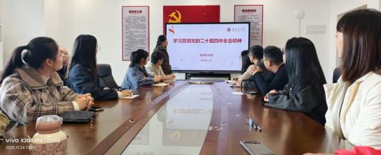 为深入学习贯彻党的二十届四中全会精神,切实把全院教师的思想和行动统一到党中央决策部署上来,11月24日中午,BB贝博艾弗森官方网站召开专题宣讲会,副院长周洁为全体教师作党的二十届四中全会精神宣讲报告,会议以“守正创新挺膺担当新时代大先生”为核心主题,推动全会精神与医学教育实践深度融合。