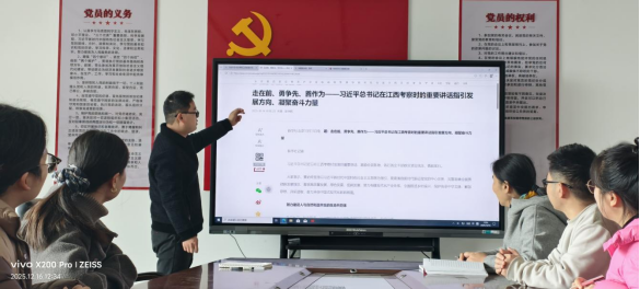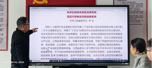 此外,党支部还组织党员学习了省委书记尹弘在《党建研究》杂志发表的署名文章,围绕“传承弘扬革命老区光荣传统,坚定不移推进党的自我革命” 这一主题展开讨论。党员们纷纷表示,要以革命老区的光荣传统为滋养,不断加强自身党性修养,在教学、科研、服务等工作中坚守初心使命,勇于担当作为,以实际行动践行共产党员的责任。