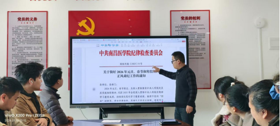会上,王旺副院长传达了学校纪委通知精神,解读了压实主体责任、严守纪律红线等核心要求,强调全体教职工需提高政治站位,强化纪律规矩意识。