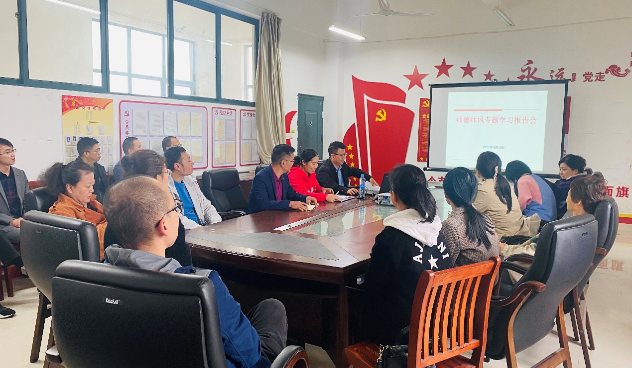 (通讯员:刘根林)为深入推进师德师风教育,以榜样的力量激励全院教职工, 10月19日下午,BB贝博艾弗森官方网站以学习习近平总书记重要讲话精神为契机,在5号实训楼党员活动室开展以黄大年同志先进事迹为主题的师德师风专题学习。学院党总支牵头人领学习近平总书记给全国高校黄大年式教师团队代表的回信精神,学院副牵头人吴龙祥和小蓝校区全体教职工参加。专题学习会由学院牵头人周洁同志主持。