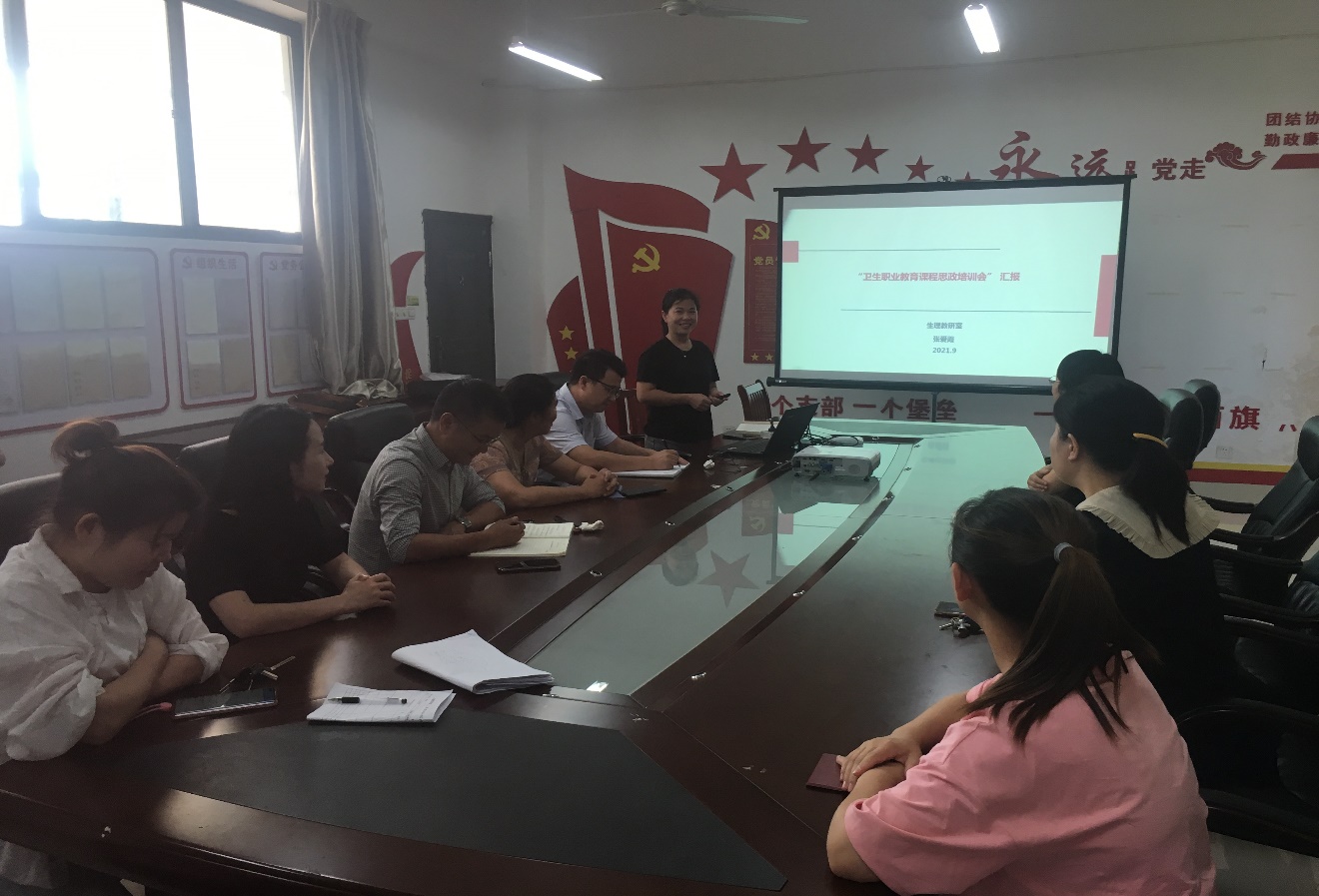 张爱霞在专题发言中,介绍了暑期在山东临沂参加课程思政培训会的学习情况,并结合自身课程思政教学实践,着眼国家逐步重视课程思政教学的大环境,从不同维度分析介绍兄弟院校课程教学专家的实践经验、专家对如何提升课题思政教学的建议。